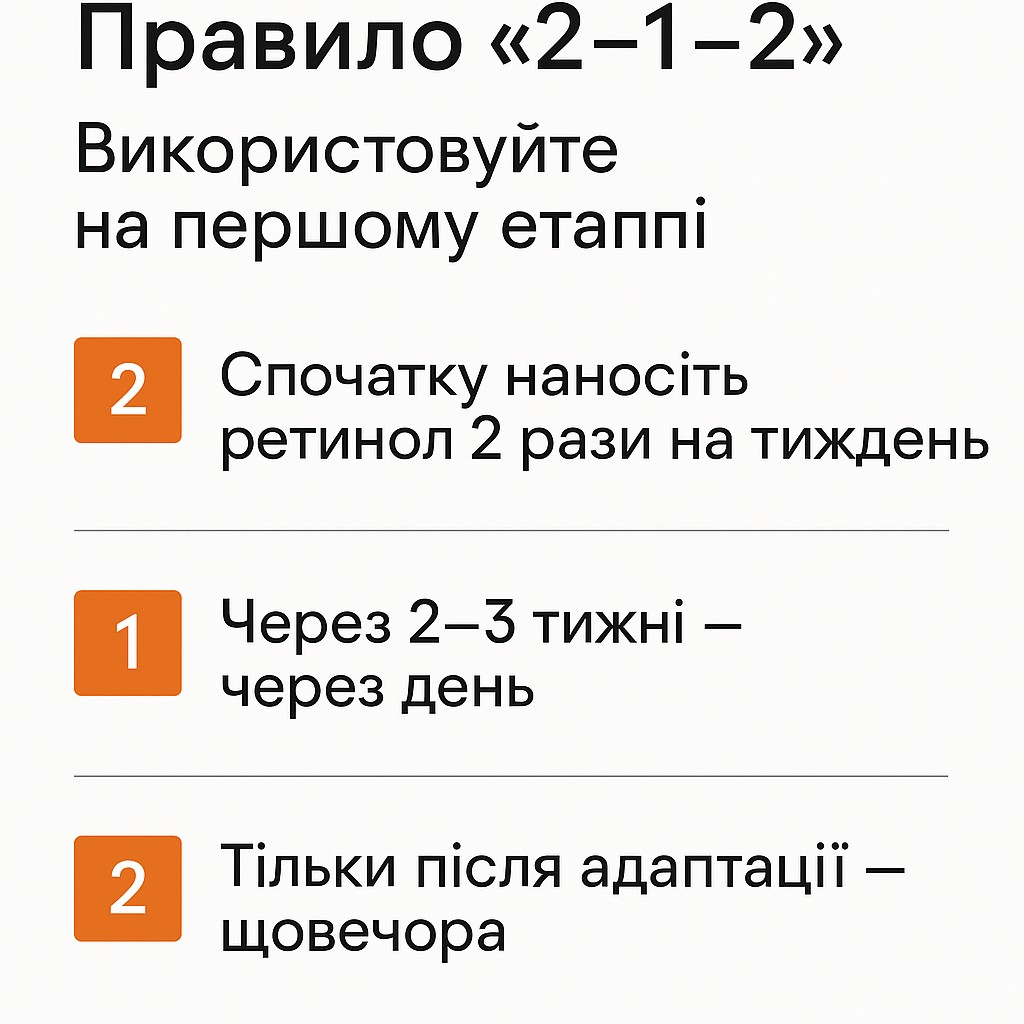 - Перший місяць: наносіть ретинол 2 рази на тиждень.