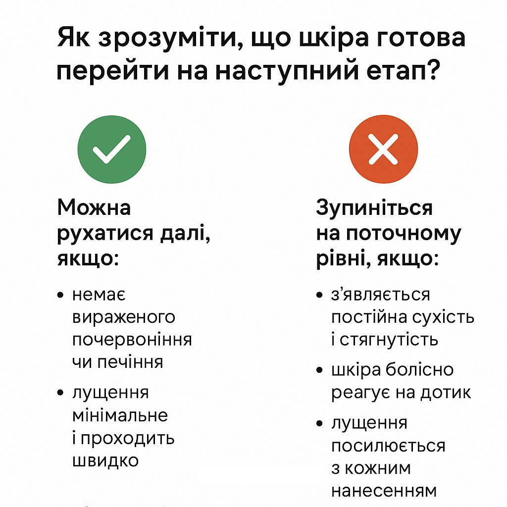 Як зрозуміти, що шкіра готова перейти на наступний етап?