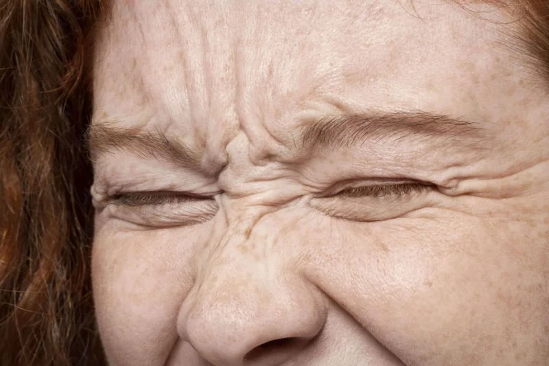 - Мімічні — формуються від активності м’язів. Найвідоміші приклади: «гусячі лапки» біля очей, вертикальні складки між бровами («лінії гніву»), горизонтальні лінії на лобі. Вони з’являються навіть у 20–30 років.